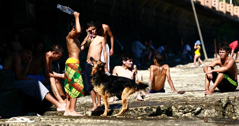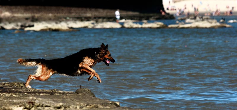 A lo lejos veo a un aventurero perro saltando al río, recogiendo una botella descartable y devolviéndola a su dueño. A los pocos minutos de fotografiar a este adorable pastor alemán, un amable pero misterioso señor me pide que guarde mi cámara. Me convence diciéndome que en el lugar asaltan a las personas que no son conocidas. Me alejé.