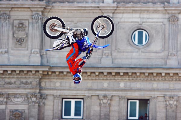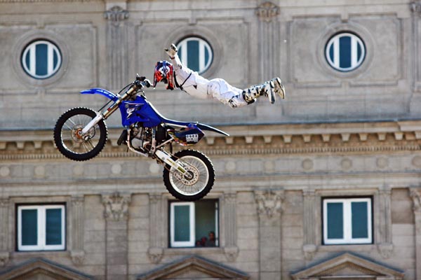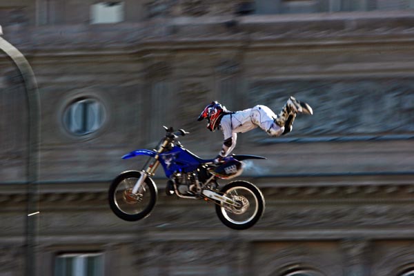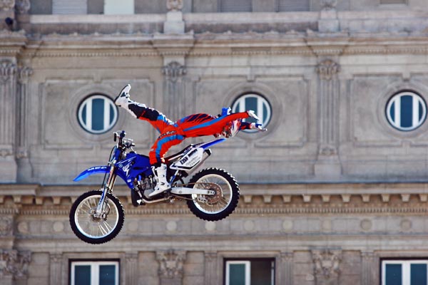 Por un instante parecen volar. Se sueltan del timón de sus motos y con aparente tranquilidad vuelven a su posición original y segura; para terminar aterrizando sanos y salvos en la plataforma construida exclusivamente para recibirlos, después de realizados sus saltos mortales. No cabe duda que ahí arriba, la vida se ve diferente…