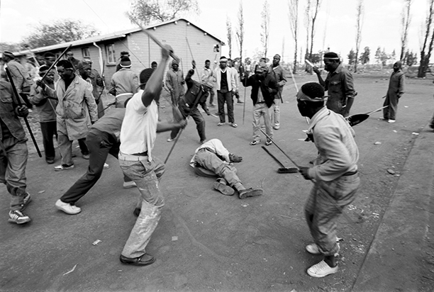 Seguidores de Inkatha golpean a otro que no lo es, con la excusa de la limpieza étnica. Soweto, 17 de agosto de 1990. Foto: Greg Miranovich