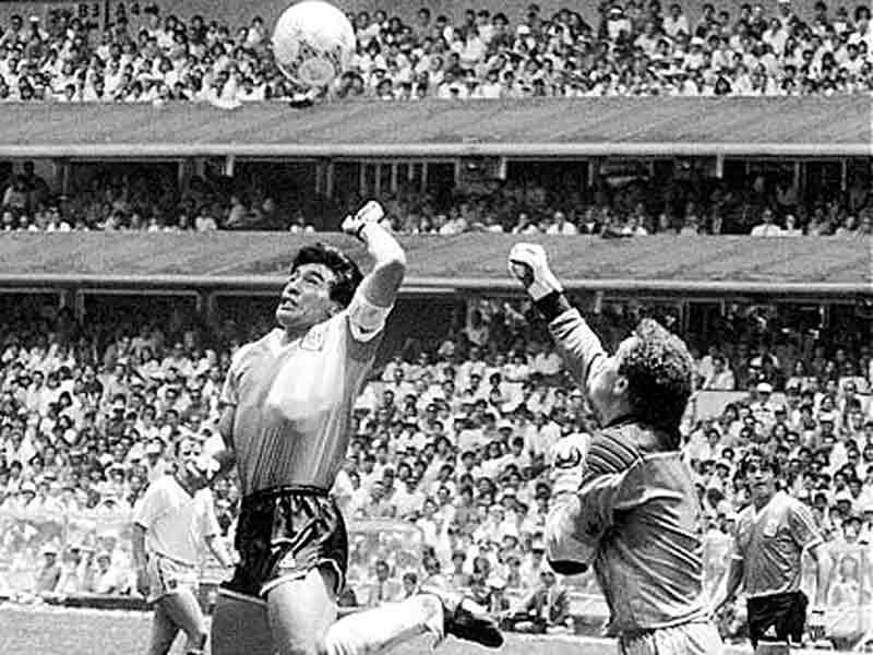Mundial México 86, todos corren por el balón, pero solo uno parece decidido a meter el gol. Tenía que ser Maradona, tenía que ser «el diez». Argentino e inglés saltan, pero sorprendentemente el 1.65 m de Maradona logra alcanzar la pelota y mandarlo directamente al arco de Peter Shilton. Las imágenes de televisión son muy rápidas, pero al parecer el gol fue con la mano. Muchos lo decían pero nadie lo aseguraba. Hasta que….hasta que los diarios confirmaron lo que todos sospechaban.